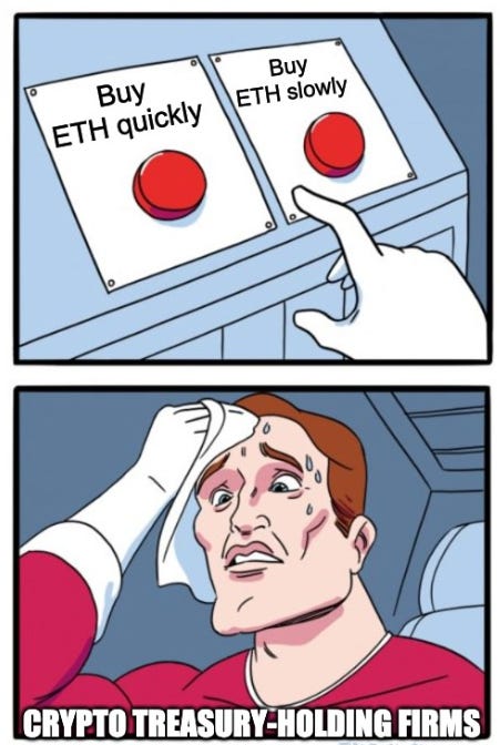 First and early-mover advantage - Firms adopting altcoins could position themselves as pioneers in ETH treasury holdings, mirroring Strategy’s 2020 breakthrough and attract investor interest as institutional adoption of ETH gains momentum. This in turn provides a very good risk-to-reward ratio as buying demand is speculated to pickup when more institutional investors could participate. To add, I believe to a certain extent firms are even trying to front-run the process to be the firm holding the largest amount of Ether. This signals to the masses that they are the “preferred” companies when it comes to capital raising and execution of Ether purchase. This action also signals credibility and attract capital due to its scale and efficiency in acquiring Ether.