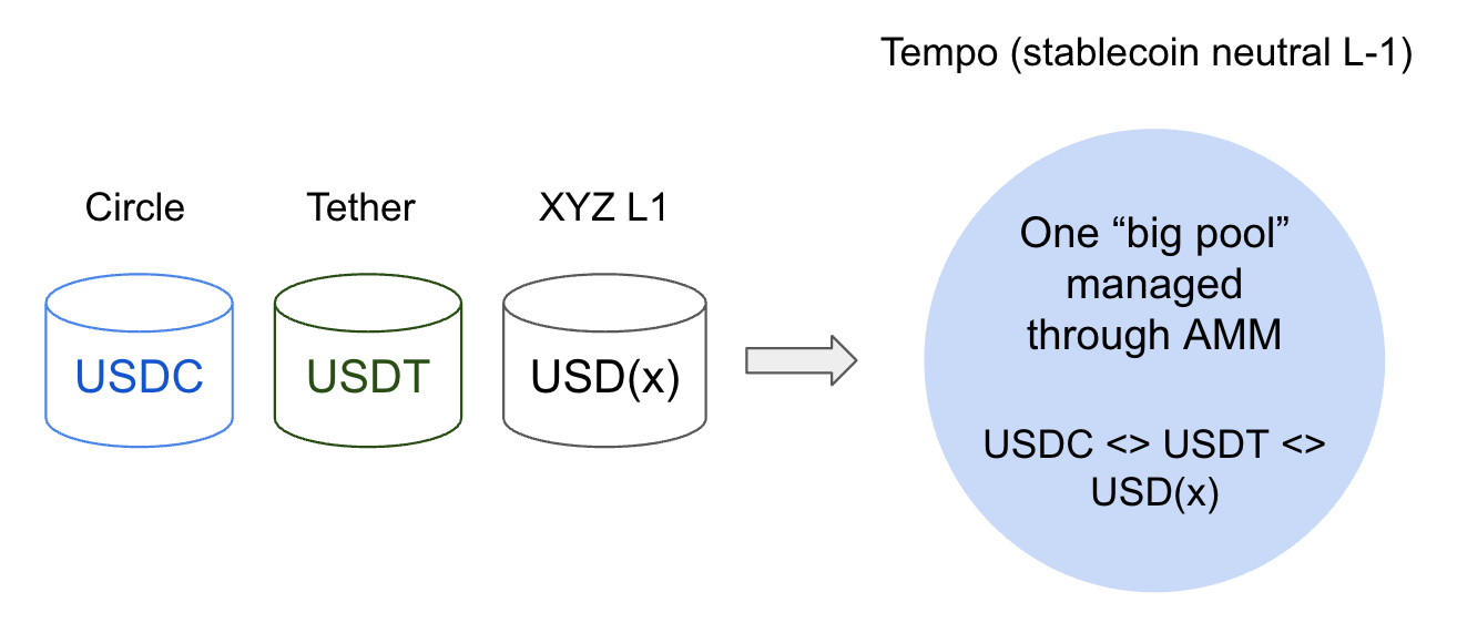 - Stripe’s Tempo takes a different path by being stablecoin-neutral. This could appeal strongly to builders looking for flexibility and users who don’t care which USD tokens to use as it relies on its internal AMM to support various USD tokens.